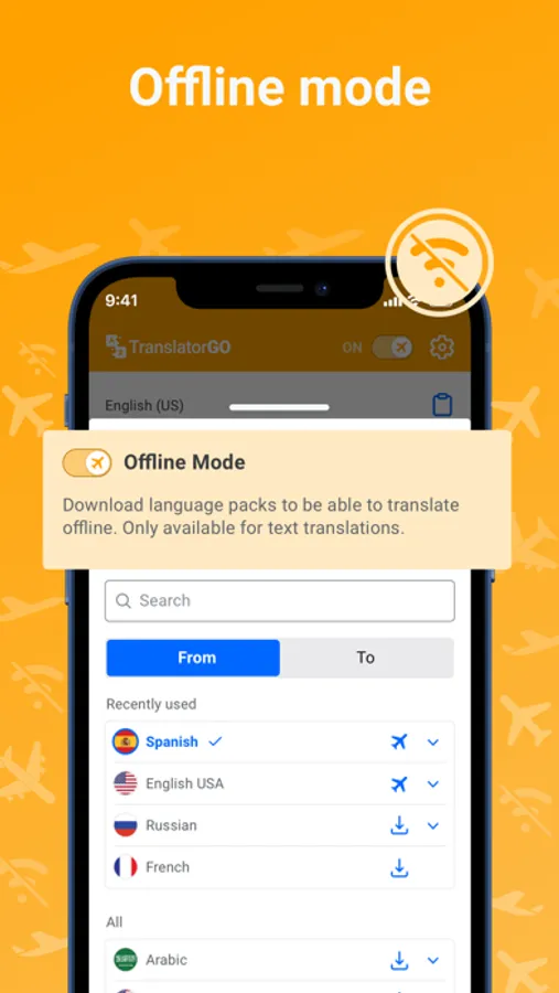 Forget needing an internet connection when traveling with Translator GO. Never worry again about roaming charges, finding Wi-Fi, or 4G/5G. Translate anywhere you are, whenever you want.
