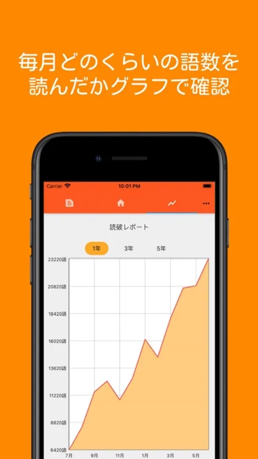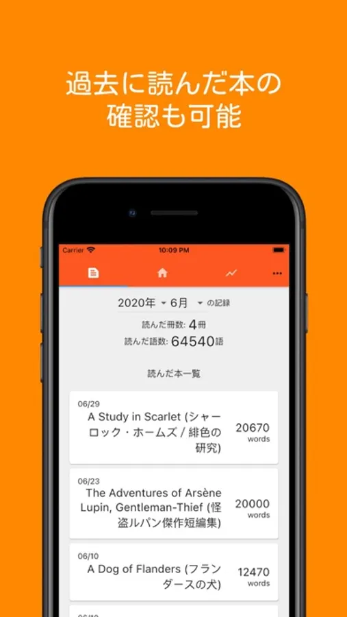 各月でどのくらいの語数を読んだのかをグラフで確認することもできるため、読書量を維持できているかどうかを一目で確認することが可能です。