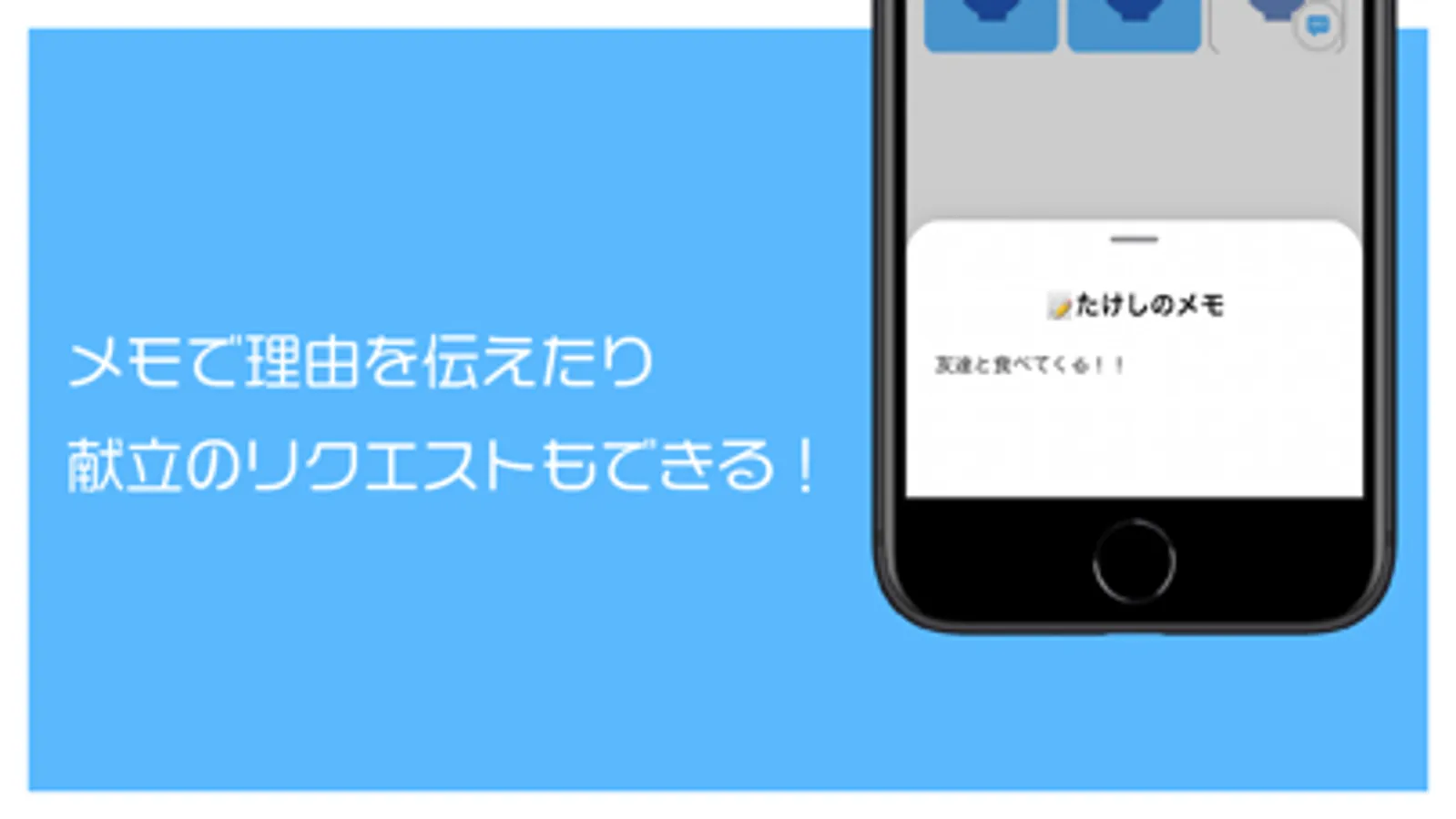 ご飯がいるか、いらないかだけでなくメモで具体的な理由や、晩御飯のリクエストを書き留めることもできます。