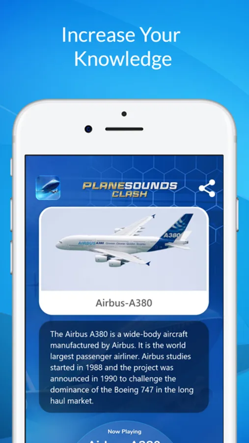 Use this Plane Sound Clash app to feel the real airplane sounds of your liking. Whether it’s a Boeing with all the luxury in the sky or a vintage airplane bomber blowing off its targets, you can feel the exact real sound of all these planes. We guarantee that you will feel like you are enjoying a virtual air show through this airplane sounds app. This app contains all kinds of popular BIG BIRDS either carrying passengers or on a mission to destroy its enemies. Download today to have the great virtual air show experience at the comfort of your own bedroom or where ever you are.