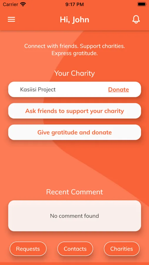 Gratis is a 501c(3) registered, non-profit app that allows users to connect with their family and friends in a shared effort to support charities and to express gratitude towards one another.