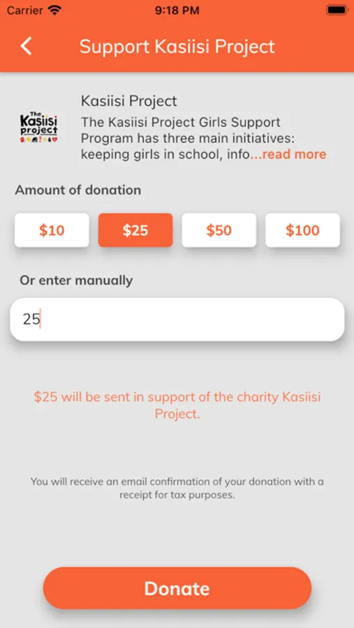 In reading about and then selecting a charity, and also in viewing their friends' charities, the app also creates awareness of various non-profits that working to improve the condition of humans, animals, and the environment.