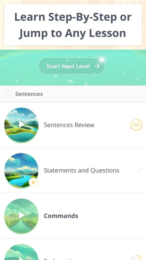 • 'Short beats good' teaching philosophy. Extra words decrease comprehension. Lessons are as simple as can be for maximum comprehension.