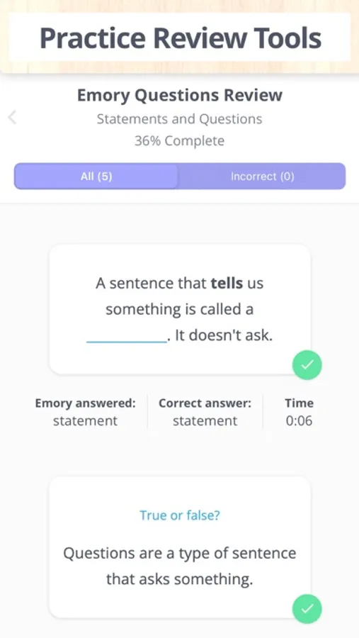 • Effective, adaptive practice. Each student sees a different set of questions. When students make mistakes, the questions change in real-time to maximize learning and minimize frustration. Algorithms incorporate the ‘spaced repetition’ learning theory.