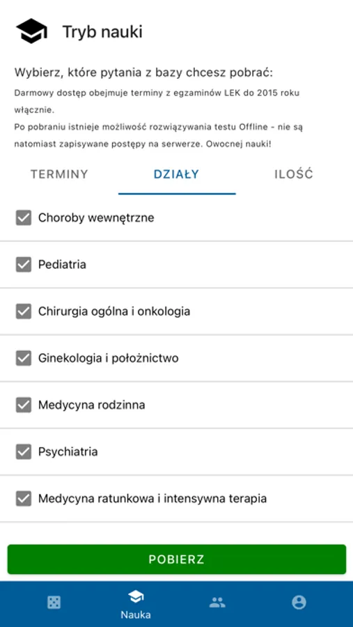 LEKsykon oferuje zupełnie nowe podejście do nauki poprzez rywalizację z innymi użytkownikami aplikacji. Umożliwia efektywną powtórkę oraz sprawdzenie stanu wiedzy poprzez rozwiązywanie testów Offline. Zawiera i udostępnia bazę pytań z oficjalnej strony CEM oraz ubiegłych terminów Lekarskiego Egzaminu Końcowego i Państwowego z lat 2008 - 2020.