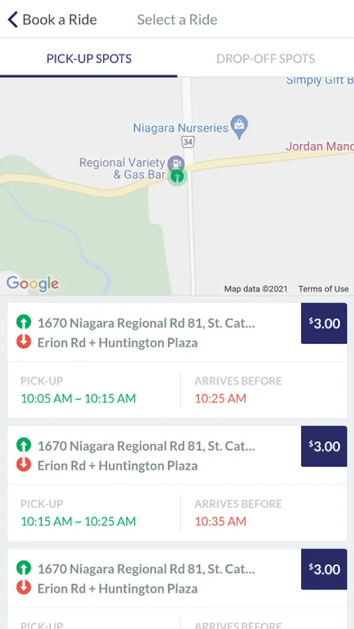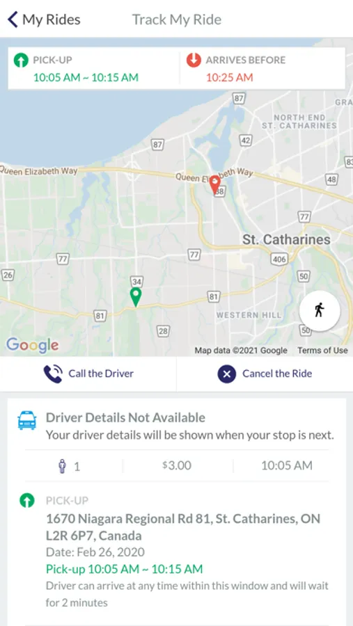 Regular St. Catharines Transit fares apply. Transfers are available upon request.