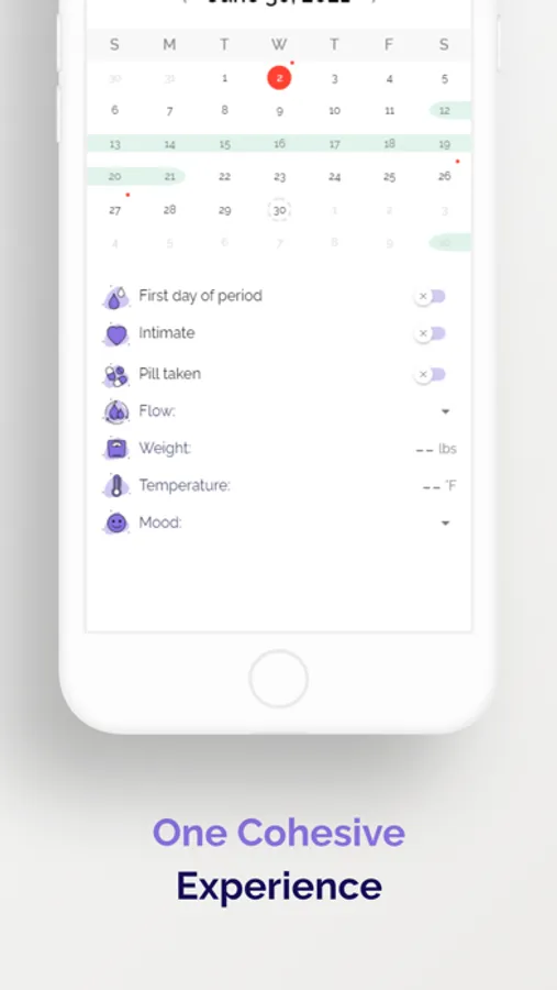 Efficiently input your period information to conveniently track your menstrual cycle month to month. With notes, accessible calendar views, and fertility predictions, tracking your period has never been easier.
