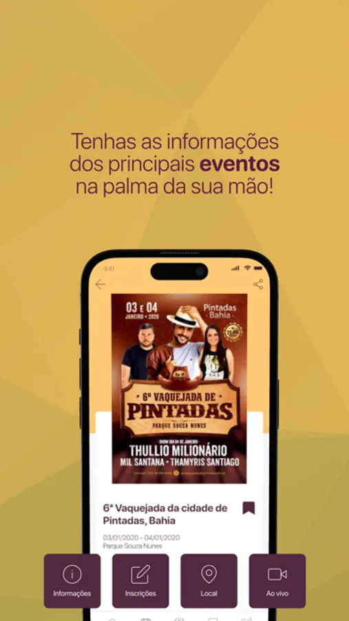 - Notificações importantes: Receba alertas sobre datas de inscrição, alterações de eventos e outras informações cruciais, mantendo-se sempre à frente.