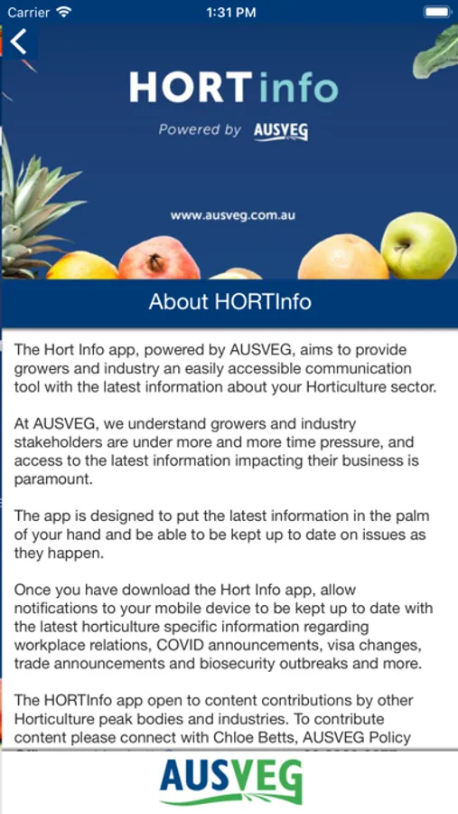 This app is designed to send immediate alerts to industry about important changes such as visa updates, award changes, Hort Connections opportunities, export opportunities and biosecurity updates.