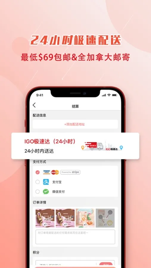支持Visa,Mastercard, 银联,微信,支付宝,interac,现金等全部支付方法,和全球最知名支付系统stripe合作,保证您的支付百分之100安全