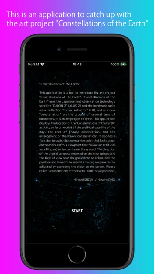 This application “Constellations of the Earth” is a tool for smartphones to help you visually understand the Art project “Constellations of the Earth” that started in 2013. “Constellations of the Earth” uses the Japanese land observation technology satellite “DAICHI-2” (ALOS-2) and the handmade radio wave reflector “Corner Reflector” (CR), and is several kilometers to several tens of kilometers above the ground. This is an Art project that creates a new “constellation” in a large area. This application displays the location of the activity so far, the orbit of the artificial satellite on the day, and the ground observation area by radio waves, and can switch the viewpoints overlooking the entire earth, artificial satellites, and radio reflectors. I can do it. In addition, it has a function to link the direction of the digital compass of the smartphone and the direction of the radio wave reflector on the screen, and a function to adjust the speed at which the artificial satellite travels in space by operating a sludge. Helps you understand.