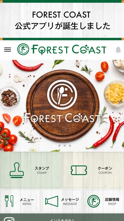 「フォレストコースト」公式アプリでは、おすすめメニューの最新情報やアプリ限定のお得なクーポンを随時配信しています。