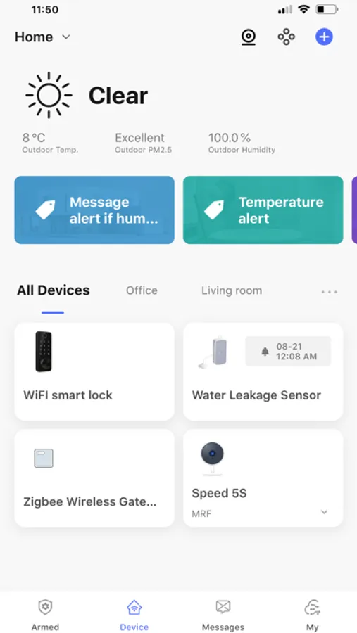 • Add a variety of security hardware and sensors, e.g. humidity and temperature sensor, garage door sensor, water leakage detector, smoke detector and etc.