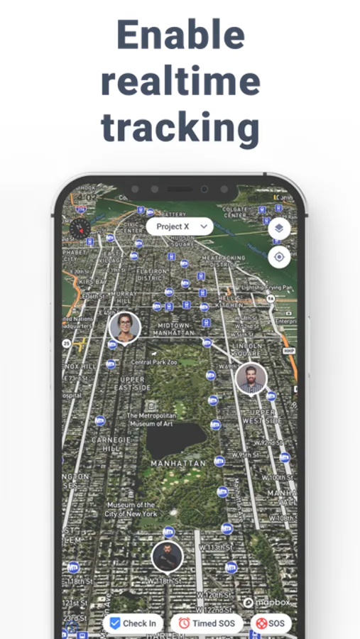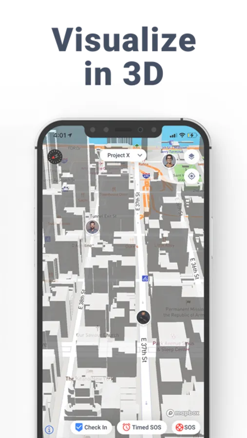 Quickly check in to let your organization know you’re safe, trigger SOS alerts when you’re in need of help, share and collaborate with your team, create marked locations on your map, and more.