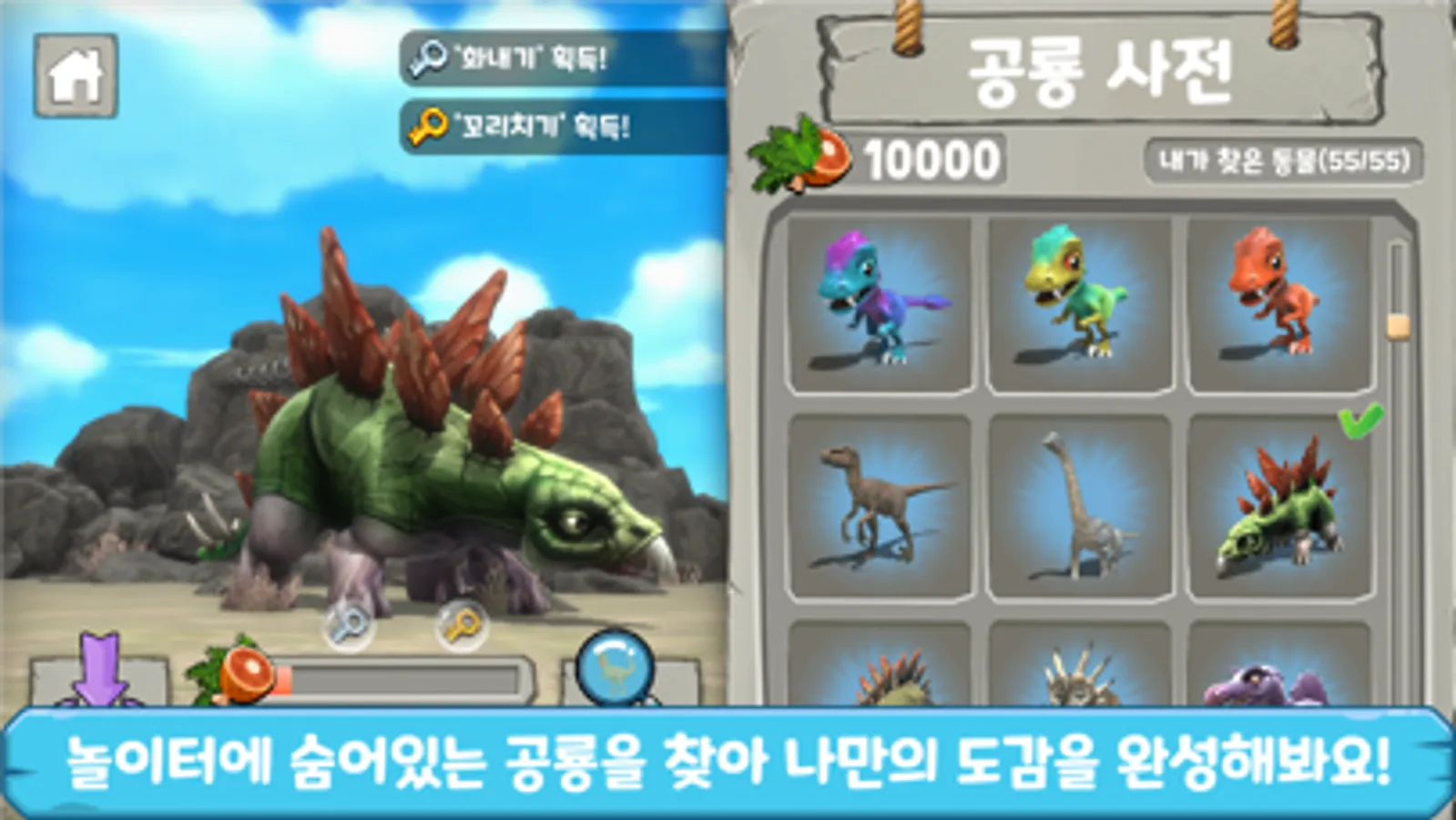 숨겨져 있는 공룡들을 찾아 나만의 공룡사전을 완성해봐요!