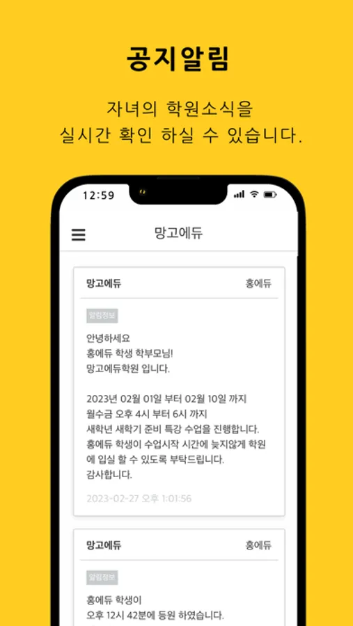 실시간으로 등하원 출결정보를 확인 하실 수 있습니다.