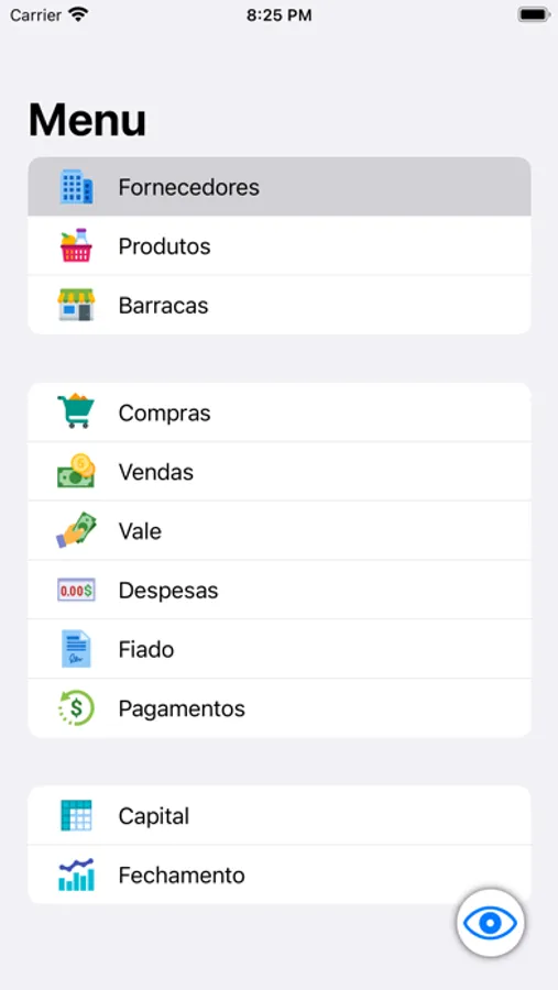 Gerenciamento de compras, vendas, capital e despesas para barracas de frutas