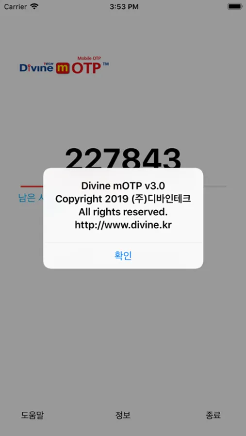 ㈜디바인테크의 추가인증 솔루션 Divine mOTP 는