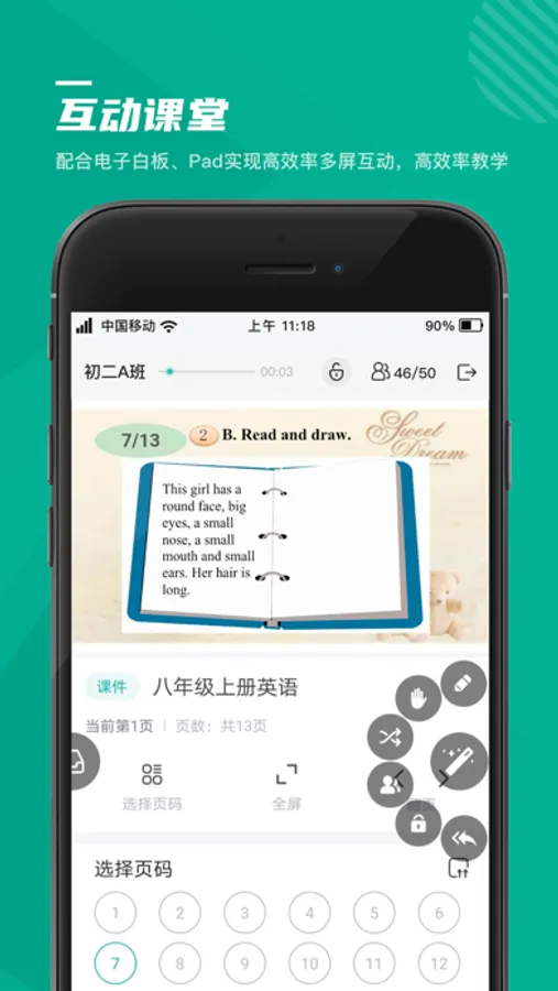 未来课堂是借助信息化技术打造的深度课改平台。连接线上+线下的混合式教学整合了在线学习和传统课堂学习的双重优势,全面贯穿课前、课中和课后等整个教学环节,在提升教师教学效率的同时,帮助学生有效提高学习成绩。 平台为教师提供定制化备课资料、动漫微课、多媒体资源、题库等优质教学资源,有效减轻教师负担。利用大数据技术,提供预习、学习和复习不同阶段的可视化数据分析,有效支持各个教学环节。平台还支持多种交互应用,在调动学生积极性的同时,能够有效提高整体教学效率。