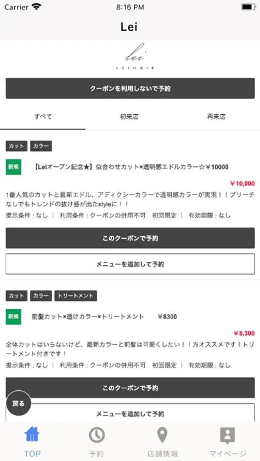 お得なクーポンが配信されます。ネット予約時にクーポン利用での予約も可能なので来店時もスムーズに施術頂けます。