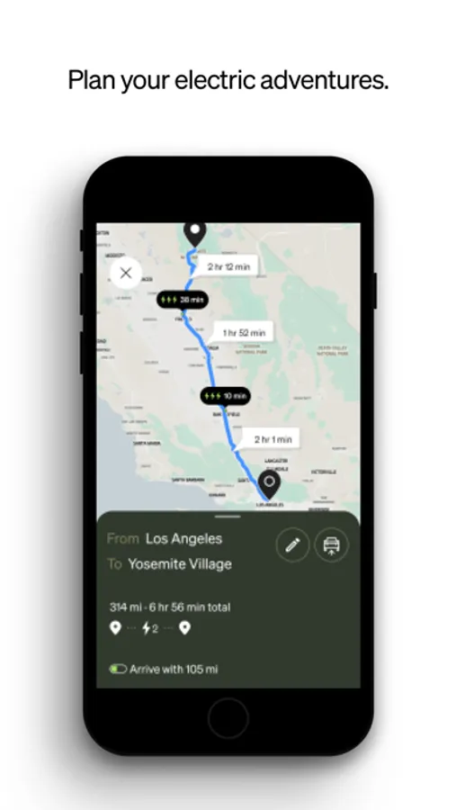 • Plan trips in the app to see recommended routes and charging stops based on your preferences
