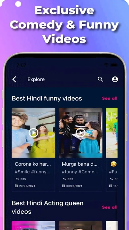 * Short videos in a variety of categories in both Telugu and Hindi