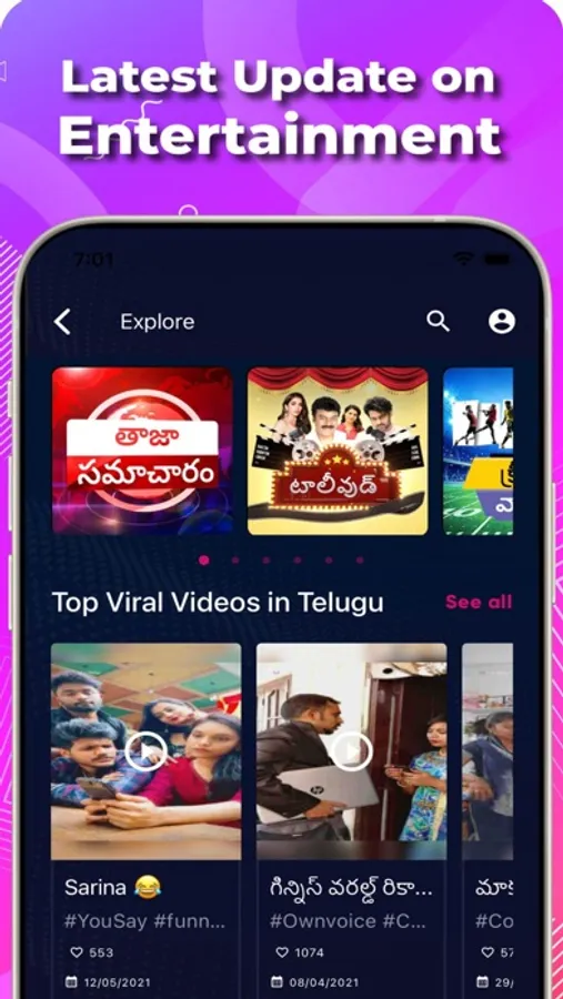 When it comes to "Entertainment," the YouSay app is the best short news app in Telugu, providing you with unlimited doses of entertainment from Telugu movies, gossip, videos, viral videos, and so on.