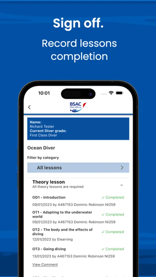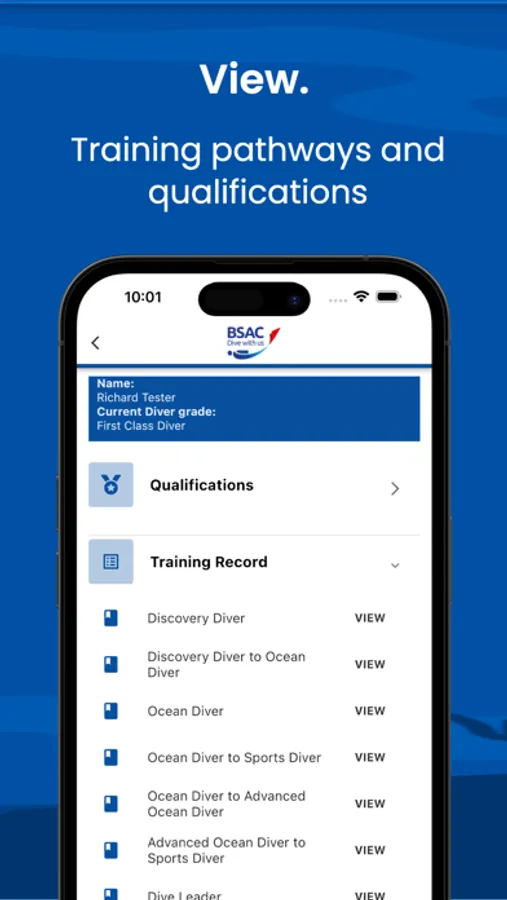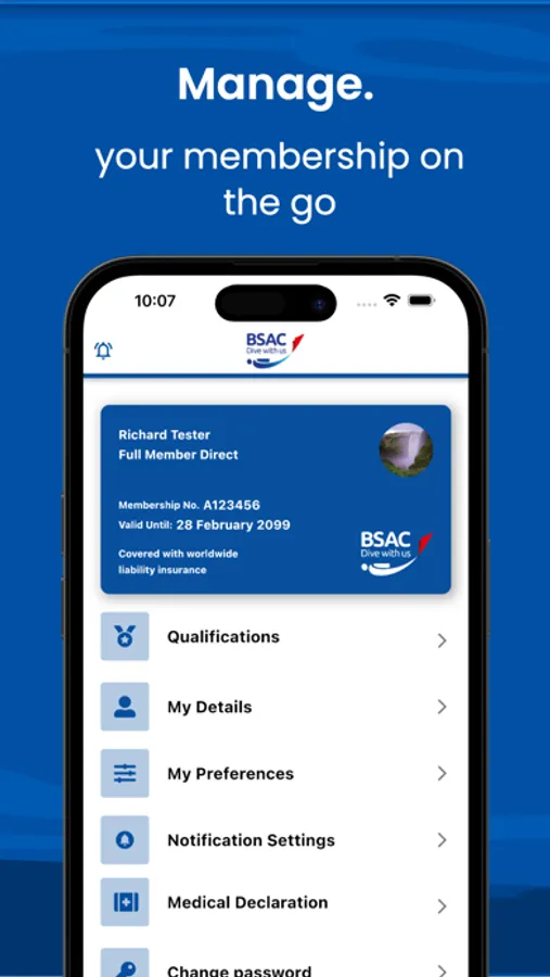 BSAC Members can view their membership card, manage their account, see their qualifications, monitor training progress and update their medical records.