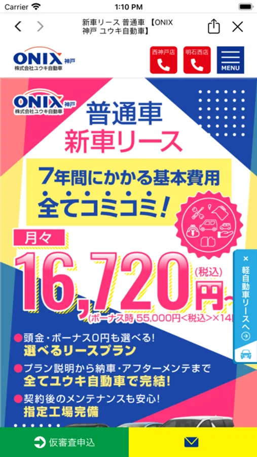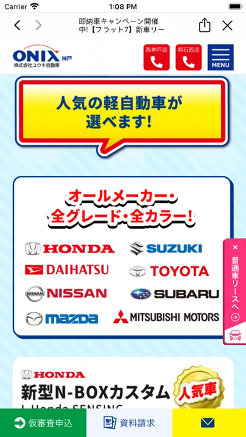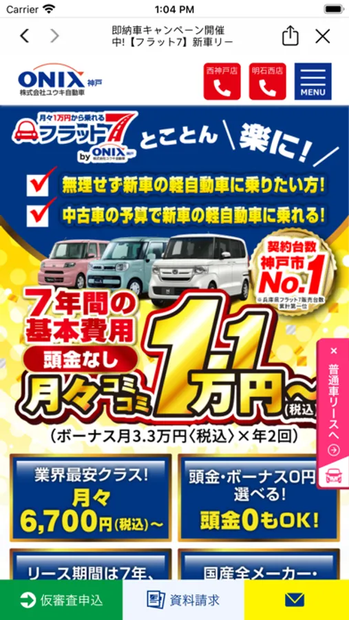 オニキス神戸は創立37周年。新車の軽が7年間月々一万円定額のフラット7、