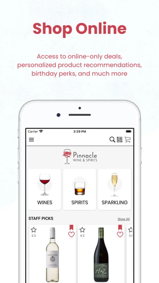 With the App you can browse for the wines & spirits available in the store, and also order a delivery or pickup.