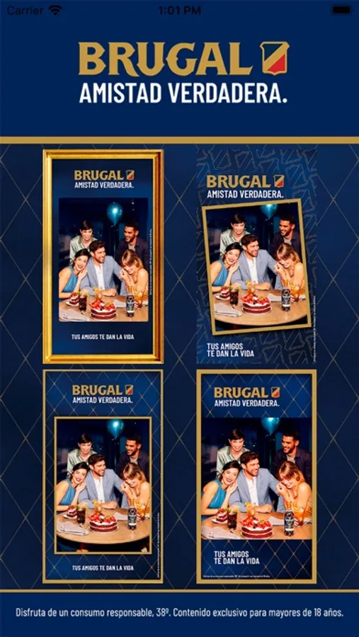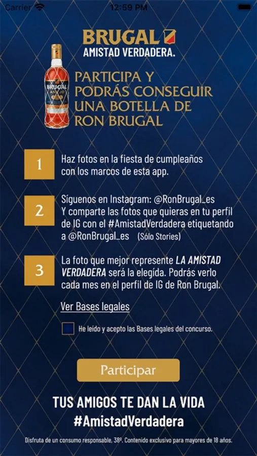 Aplicación promocional para la campaña Brugal Amistad Verdadera que permite capturar fotografías dentro de un marco preseleccionado.