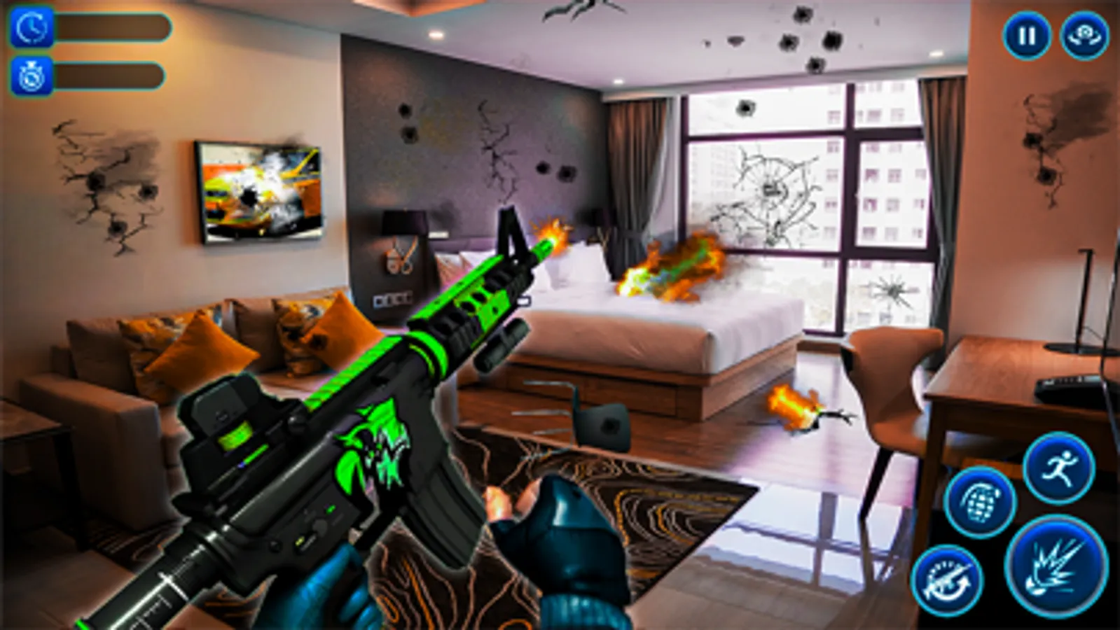 We are here to cherish you by offering you our latest stress reliever game with exciting gameplay! Enter into scary Abandoned houses & perform various missions like shooting, destroying, and smashing Scary home stuff. Smash & destroy targeted items and have fun with this destroying game. In this demolition game, your goal is to smash the house interiors with shooting Guns.