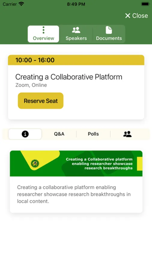Network with other participants, access resources, join events live and receive instant updates about the event and ongoing activities.