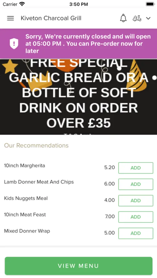 Thank you for visiting Kiveton Charcoal Grill in Kiveton Park. We hope you enjoy our online ordering app and your food.