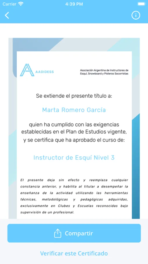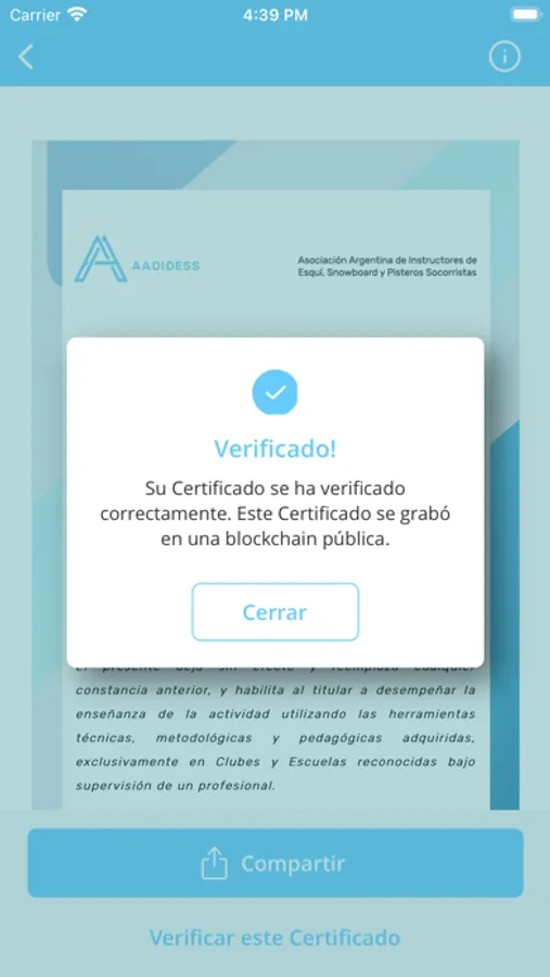 Gracias a esta App puedes almacenar tus certificados y carnets en un único lugar. Los podrás compartir fácilmente a través de tus redes sociales si así lo deseas. Además podrás demostrar su validez contra la firma digital almacenada en un Blockchain público. No hay manera de falsificar tus títulos.