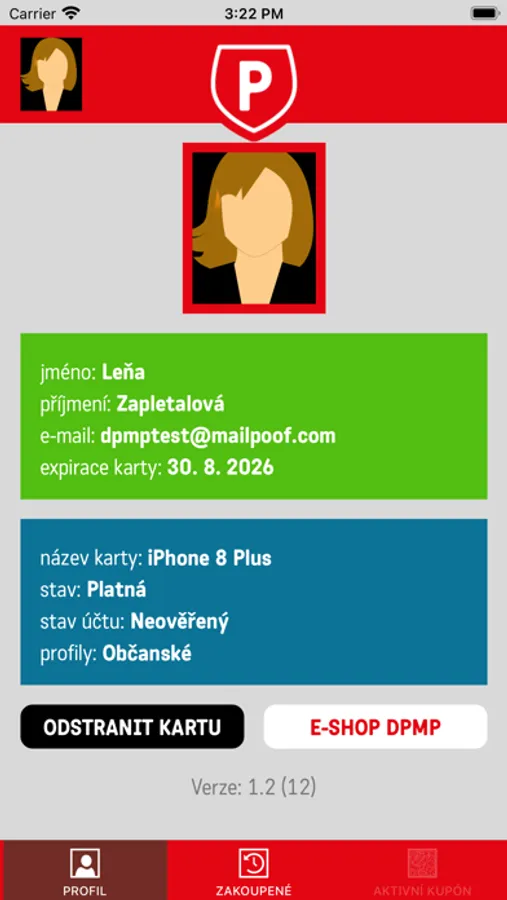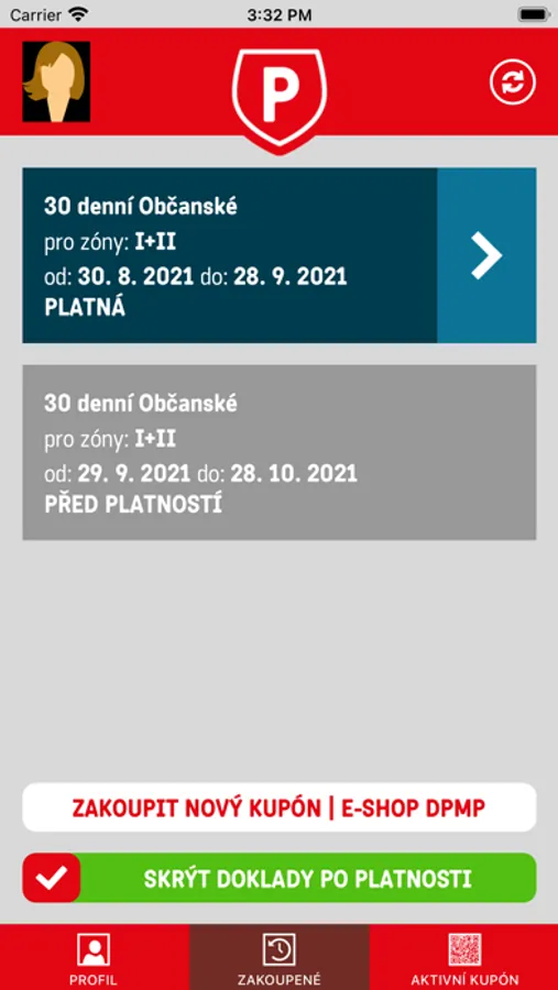 - zobrazení zakoupených časových kupónů prostřednictvím mobilní aplikace