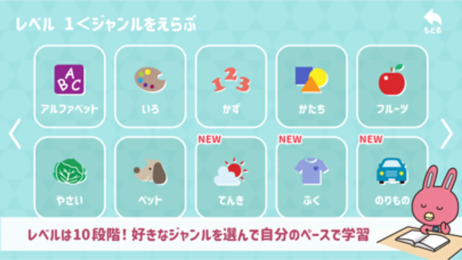 未就学のお子様から小中学生までレベルに合わせて楽しく学べます。これ1台で、高校初級までに出題される主要単語(約2700語)まで学習できます。