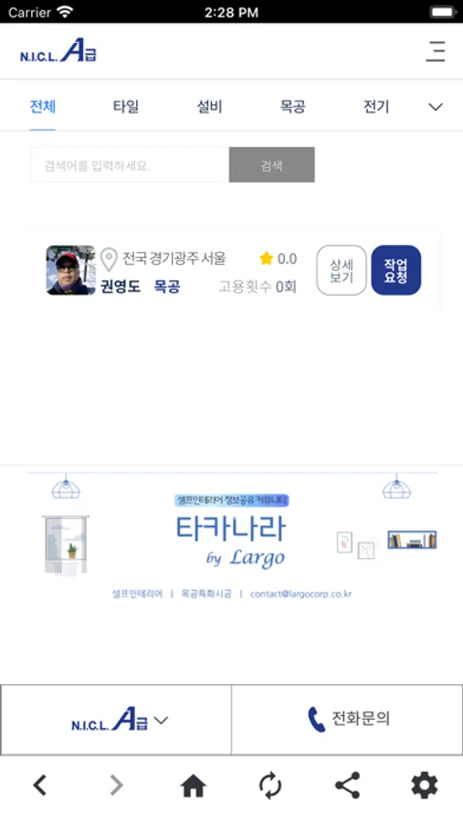 - PC와 모바일을 통해 언제 어디서나 원하는 공사 일자에 맞춰 A급 작업자를 섭외할 수 있습니다.
