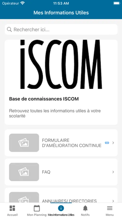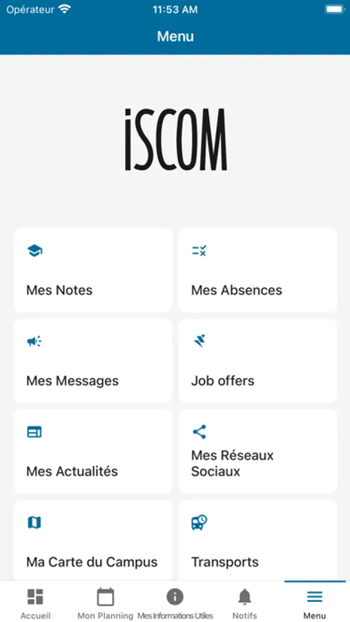 Thanks to ISCOMxME, you will have access to your schedule in real time, to ISCOM news & events, to a direct link with the administration by message, but also to our job search partners, ...