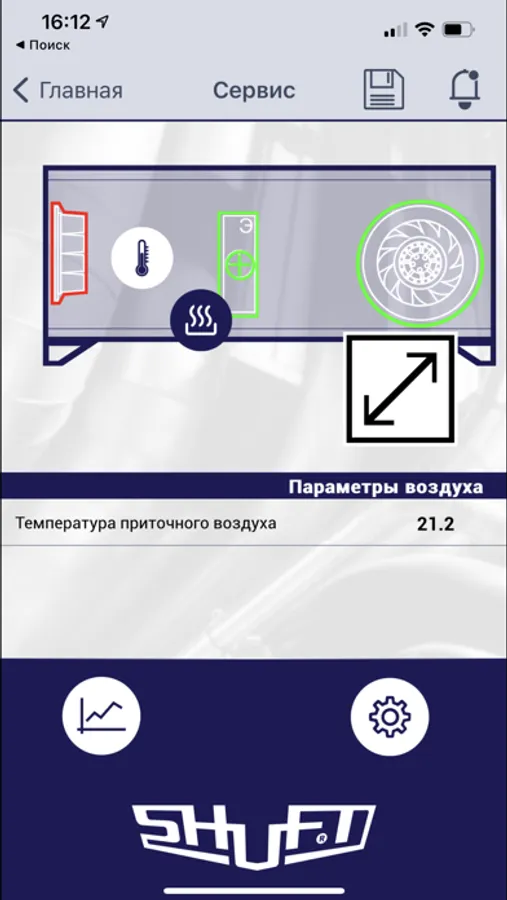 Shuft Application interacts to the new generation AHU controllers and makes possible to control room air parameters to make it comfortable. This is the advanced level of the industrial and residential AHU control. Unit parameters accessed securely via the Application. Different access levels available - User, Service and Manufacturer for the advanced unit setup during production.