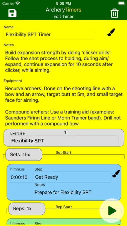 o Each timer has configurable Sets and Reps, plus configurable pre- and post- reps steps.