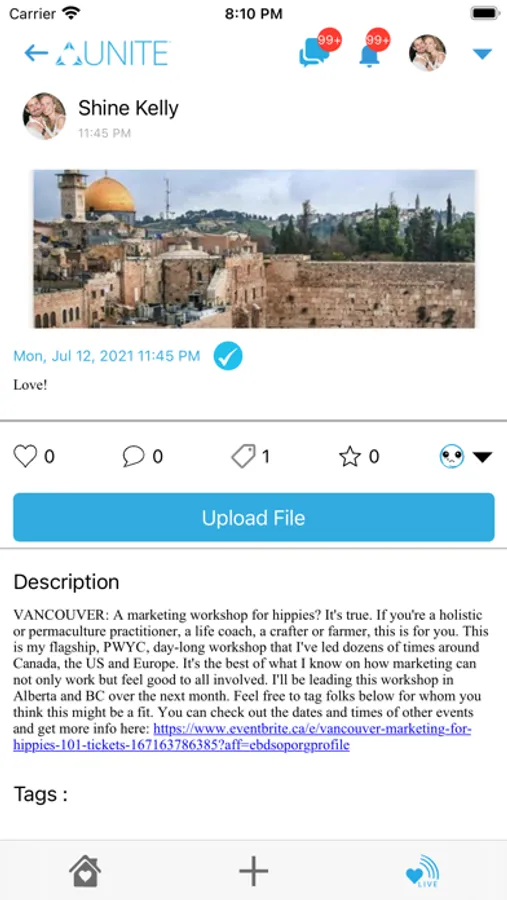 We are building the LoveStream, which will be a live streaming, audio & video platform to connect you with experiences to elevate your spirit! Using Zoom in our first iteration, you will be able to create a LoveStream & hangout with friends, or create/join an event, invite people, and even sell tickets, get tips, and have people subscribe to pay you monthly like Patreon. Eventually we will create Channels which will help organize all the information on UNITE. Instead of Facebook groups, where there are 30+ room rental groups in Vancouver, we will have one channel, with sub channels to help people find exactly what they’re looking for in seconds. You will be able to pick your desired price, location & more, and get a personalized list based on your specific preferences, taking into account your unique tastes in places, people, amenities, etc.