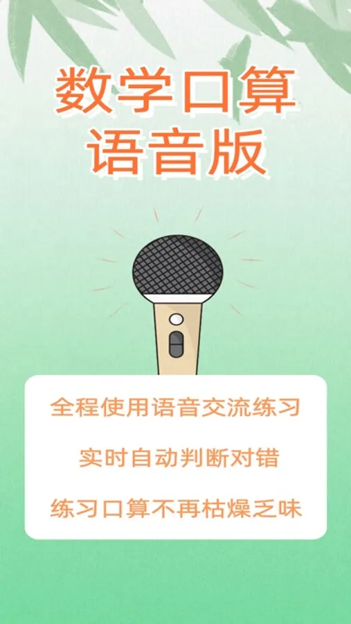 口算语音版是以语音交流为主的口算练习软件,是一个易学易懂、操作简单功能强大的口算速算练习软件,适用于幼儿至小学1~6年级儿童。软件特色是全程练习使用语音交流,声音出题、声音判断对错,眼睛不必看屏幕,有效保护视力。语音交流同时还能提高孩子的听说能力。练习过程中关联小红花及愿望目标,在宝贝达到练习目标时给出适当奖励,激发宝贝学习兴趣!