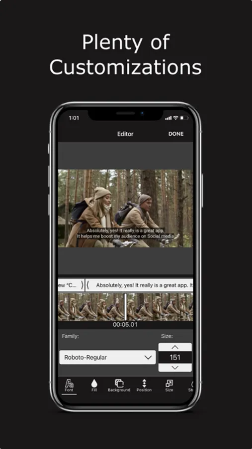Captions Studio is a very easy way to subtitle your videos. You've got plenty of options to customize your text's font, font size, color, background color, stroke, shadow, position, etc...