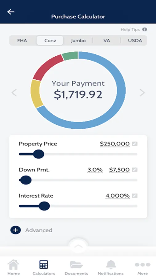 FHA, Conventional, VA, USDA and Jumbo calculations INCLUDING: Mortgage Insurance (MI), HOA, Hazard Insurance and Property Tax components! Explore the home buying process with the Step-By-Step Guide or determine which program is right for you. Receive professional advice and updates on the go with direct messaging and push notifications.