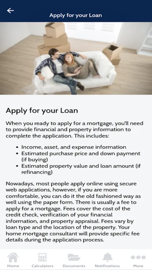 App Features:· Calculate payments to the penny with 13 precise calculators· Estimate home affordability· Decide whether or not to refinance· Chart your home buying journey with step-by-step guide· Identify the right loan program · Track your progress with interactive checklist· Stay informed with mobile blogs· Scan and upload your loan documents securely· Connect instantly with your loan officer via messaging and push notifications calculations: