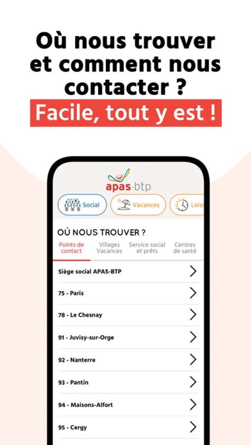 - Trouvez rapidement les lieux où nous sommes présents et les contacts dont vous avez besoin.