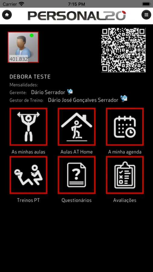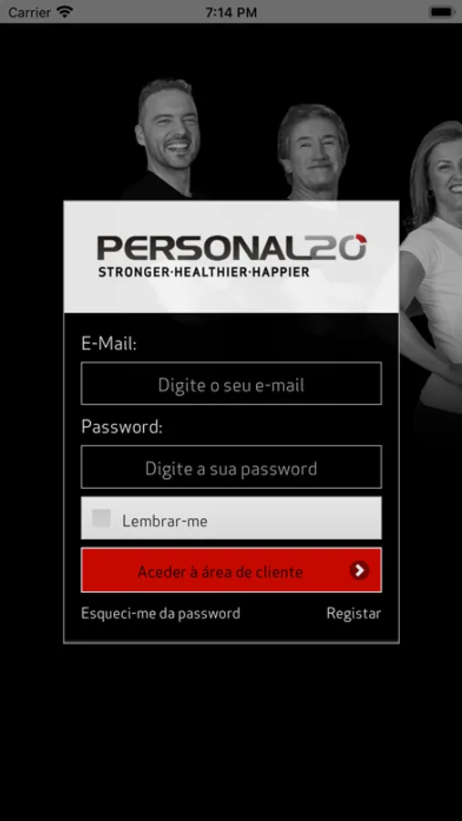 Aplicação do Personal20 - onde poderá reservar as suas aulas, ver os seus treinos e muito mais.
