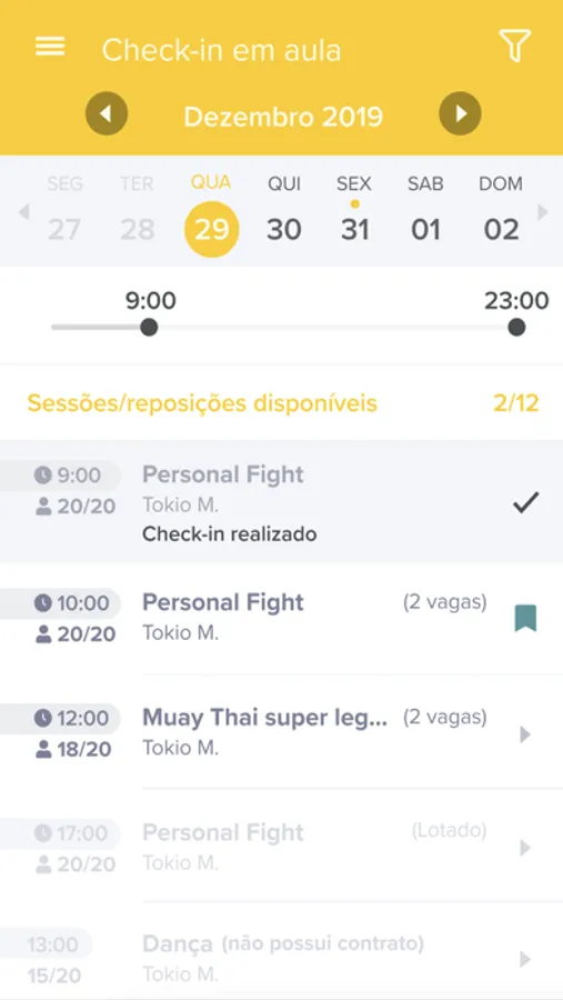 - Realizar check-in nas aulas