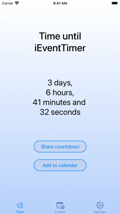 iEventTimer loads event dates from the web, so you never have to remember to add an event. If you want, you can also add custom events to count down to.